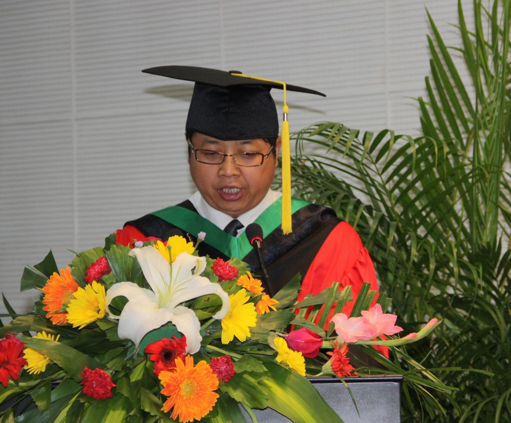 经理邹志荣教授代表公司致辞,他向经过刻苦学习、圆满完成学业的毕业生表示热烈的祝贺,向为培养员工付出辛勤劳动的全体老师致以崇高的敬意。邹经理对即将走向工作岗位、报效祖国和人民的毕业生提出了四点殷切希望:第一,希望毕业生成为理想远大、热爱祖国的人;第二:希望毕业生成为心态端正、胸怀宽广的人;第三:希望毕业生成为勇于创新、敢于创业的人;第四:希望毕业生成为诚实守信、品德高尚的人。最后邹经理希望全体毕业生秉承“诚、朴、勇、毅”的校训,牢记历史使命,继续勤奋学习、努力工作,为中国园艺事业的发展做出更大的贡献。