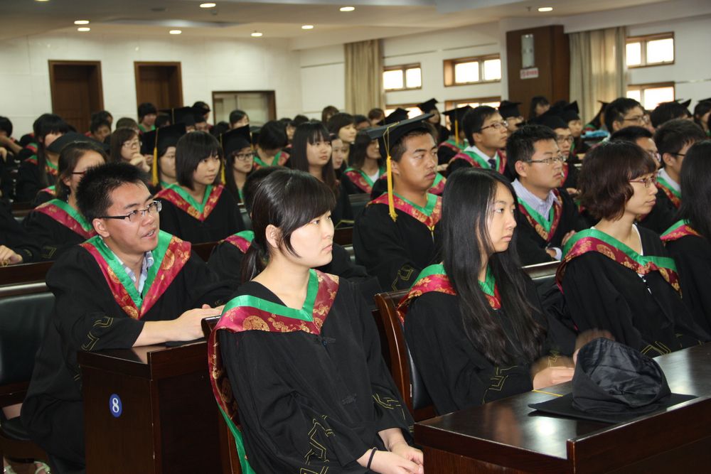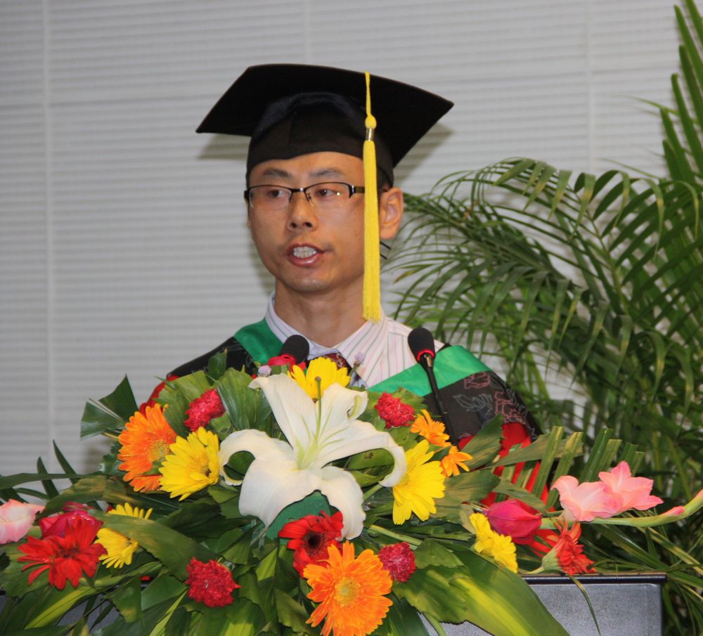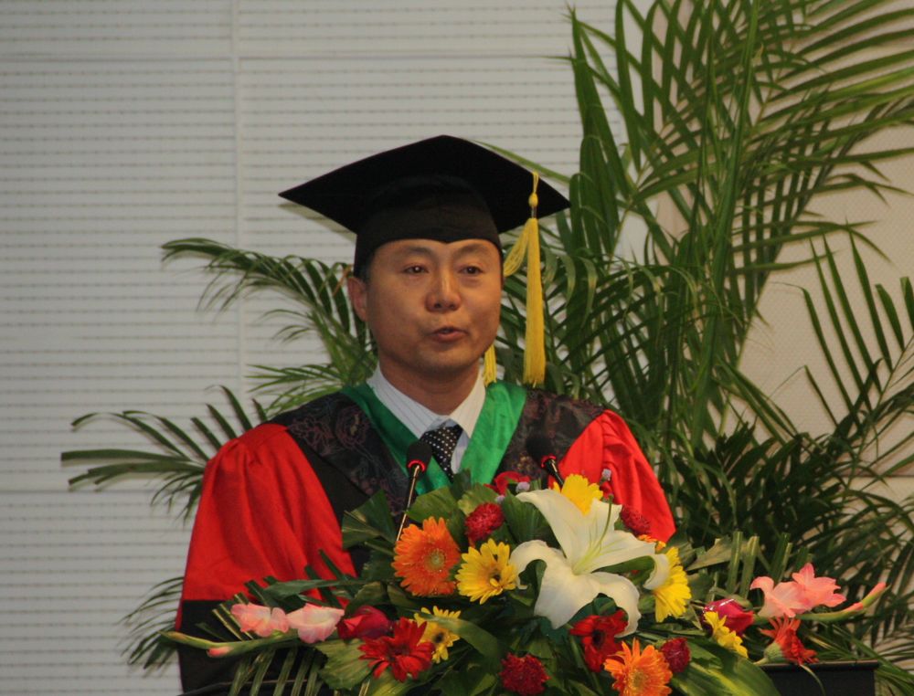 教师代表宫海军教授说,作为2011届本科毕业生的师长,他见证了大家四年的学习和成长,看到今天成熟稳健、知识丰富、能力提高、激情洋溢的270名毕业生,他感到由衷的欣慰和幸福。宫老师谆谆教导全体毕业生:“文凭不等于水平,学历不等于能力。学以致用,才能在社会这所大学中获得认可。”他希望大家树立远大目标,以开放的胸襟和积极进取心,拥抱新的挑战,用智慧和汗水开创美好的未来。最后,欢迎大家常回母校看看。
