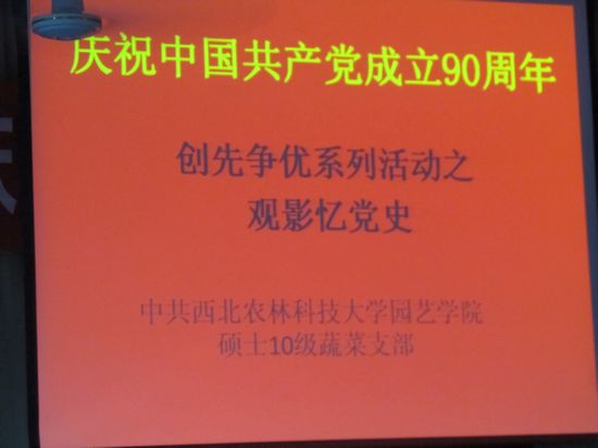 7月1日,由365英国上市官方网站硕士2010级蔬菜党支部举办的“创先争优系列活动之–观影忆党史”在公司蔬菜所四层会议室顺利举行。支部所辖蔬菜专业、设施农业科学与工程专业全体党员以及部分群众参加了此次活动。