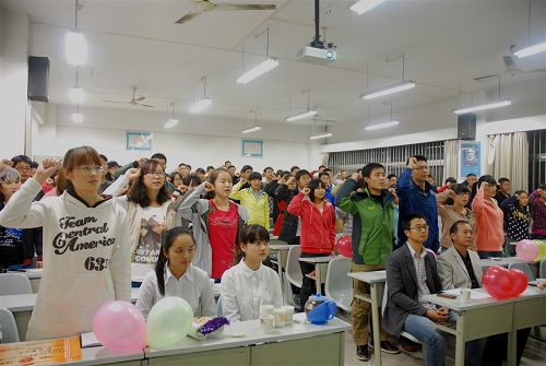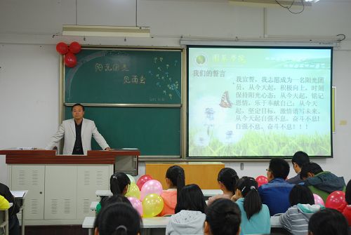 公司阳光团工委负责人结合过去一年活动开展情况,讲解了阳光团工委在培养阳光团员诚信意识、感恩意识和社会责任意识等方面做出的尝试和努力。国家奖学金获得者,2012级优秀阳光团员代表郭维同学结合亲身经历用生动感人的话语分享了自己脚踏实际,积极参与公益活动的故事,鼓舞阳光团员要以一颗感恩之心来回报社会。新团员代表梁凯同学发言表明做一名优秀阳光团员的决心。最后在阳光团员朱丽芳同学的带领下,全体阳光团员进行了庄严的宣誓,“自强不息,奋斗不息”的誓言响彻教室,展现出团员们的决心与信心。