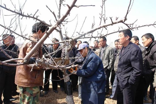 最后,杜专家带领大家参观了试验站新建矮化密植园,重点向大家介绍了矮化园宽行距窄株距的现代栽培模式,使来访者受益匪浅。