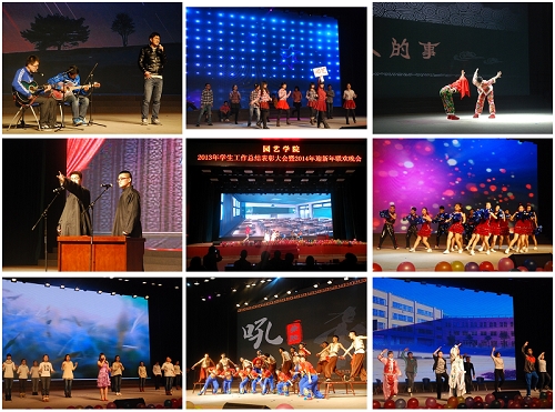 以“寻梦青春,花young园艺”为主题的联欢晚会在青春洋溢的开场舞表演中拉开帷幕。别开生面的相声《我要幸福》传递幸福的真谛;激情四射的民俗舞《吼秦腔》让现场观众充分感受西北风情;幽默诙谐的小品《三国外传》展示了不一样的三国“历史”;十佳歌手倾情演绎《I want it that way》,博得观众的阵阵掌声。精彩纷呈的文艺节目间的现场互动也饶有意趣,同学们还通过 “微博墙”参与互动,为表演者加油,并送出新年祝福。联欢晚会在一曲合唱《明天会更好》的希冀中圆满结束。