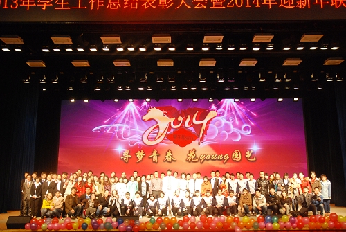 1月2日晚,公司2013年员工工作总结表彰暨2014年新年联欢晚会在北校区绣山活动中心隆重举行。公司领导、辅导员、班主任及600余名员工欢聚一堂参加了大会并观看了晚会。