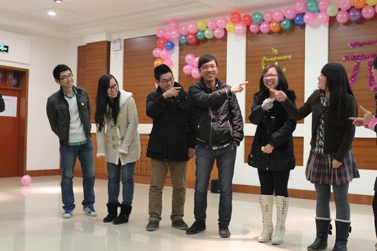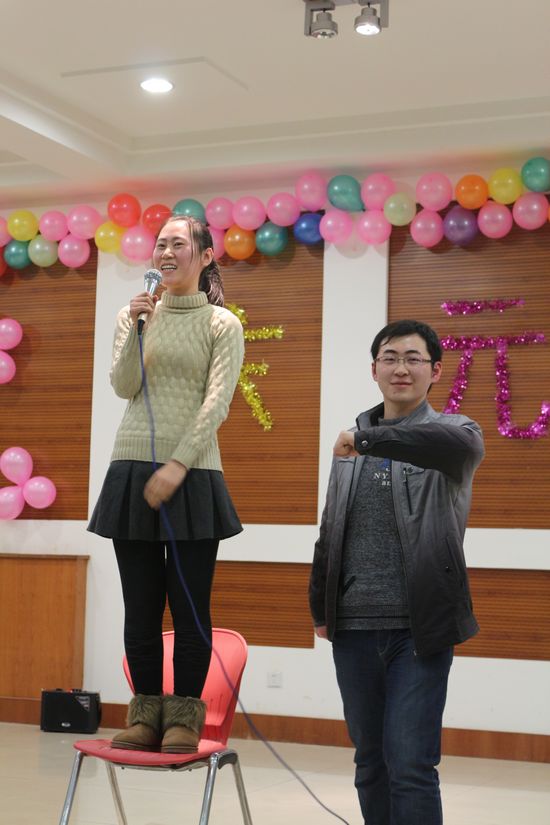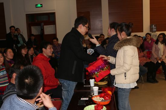李京春及陈龙老师在晚会开始前发表了精彩的新年致辞,为晚会奠定了轻松愉快的氛围。联谊节目精彩纷呈,歌曲爱的华尔兹、不再犹豫以及由研究生李苗带来的独舞使晚会掀起了一个又一个高潮。节目表演期间,晚会还展开了萝卜蹲、谁是卧底、你演我猜、传气球、击鼓传花、人民币抱团等6个互动游戏,全场师生参与其中,场面热烈,其乐融融。在自由发表新年畅想环节,研究生们也表达了对未来一年的美好期许。