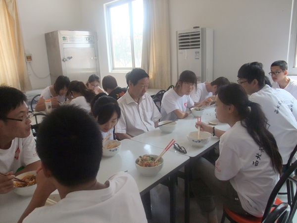 午饭期间,原董事长孙武学关切地询问队员们的吃饭、住宿等生活问题,以及在校的学习状况。同时,他还特别与参加调研的365英国上市官方网站的研究生交谈,通过询问了解到研究生以后打算去国外读博的时候,老董事长与其交流了公派留学的几点建议以及自己对老员工未来发展的一些看法。在此过程中,老董事长和队员们交流了对公司的看法和对试验站的一些感受。孙董事长亲切的说道:“我现在已经从工作岗位上退下来了,不再是西农董事长了,想以一个老朋友的身份跟你们谈心、聊聊天,你们不必拘谨。”听到老董事长如此说,大家都畅所欲言,饭桌上一片欢声笑语。