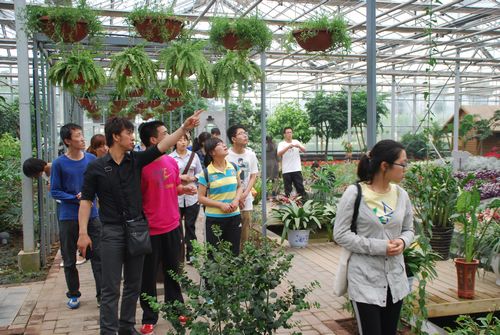 答疑结束后,为给报名参与竞赛的同学提供创作灵感和设计素材,在张勇老师的带领下,同学们到现代农业科技示范园先后参观了西部特色展馆、现代农业创意馆、澳大利亚高新农业展示园、梦幻花卉馆、无土栽培馆、工厂化育苗馆。