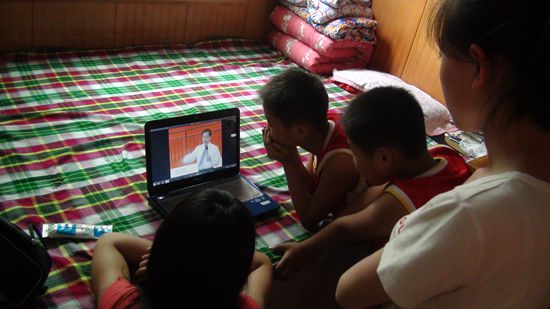 孩子们认真观看视频