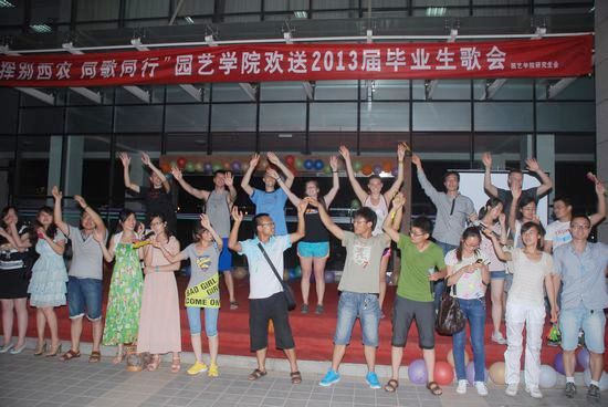 6月23日晚,公司举办的“挥别西农,同歌同行”欢送2013届毕业生歌会在南校区绣山活动中心广场拉开帷幕,公司党委副书记李京春、副经理王增信、辅导员郭东花及各公司研究生会主席团成员出席了此次活动,旨在为即将踏上工作岗位以及继续深造的毕业生送上我们真挚的问候与祝福,愿他们用最美的音符谱写自己最唯美的乐章。
