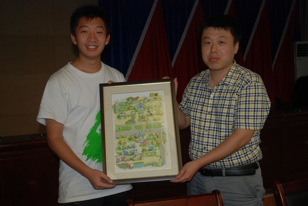 座谈会结束后,队长王韫炜代表服务队向丹凤团县委赠送公司员工创作的“手绘西农”一幅作为纪念,感谢团县委在本次社会实践活动中提供的帮助。队员们纷纷表示将牢记杨书记的话,为农村的发展而努力,为实现老员工的中国梦而奋斗。