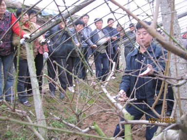 培训期间,与会专家通过实地考察,对果农遇到的病虫害,修剪等问题进行了指导,之后有针对性的开展报告培训工作。培训内容涉及我国桃产业成本效益分析与增效途径,设施栽培技术品种选择、桃果安全生产病虫害综合防治技术及桃树整形修剪技术等方面。