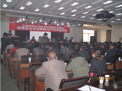 11月12-13日,公司国家桃产业技术体系西安综合试验站在大荔进行了桃果安全优质高效生产综合培训会。体系栽培与综合研究室主任王志强研究员,育种岗位专家王力荣研究员,植保研究室主任张帆研究员,栽培研究室整形修剪岗位专家陈海江教授授课,陕西省基地示范推广区县的技术业务骨和果农等70余人参加了培训。