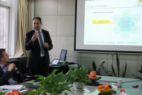 2月20日下午,兰辛格兰德市长、代表团团长Ewald van Vliet先生一行9人来公司进行合作交流。 公司副经理马锋旺教授就公司、公司基本情况向客人做了介绍;GreenQ(栽培工艺专业集团)园艺顾问培训集团总裁L.A Van den Berg就集团开展的业务及服务项目进行了说明。随后双方就“园艺种植培训、设施栽培技术、项目合作交流”等方面进行了座谈。