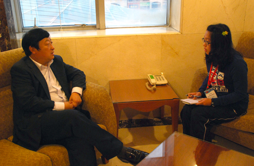 邹志荣教授在接受员工记者采访(郭亚晨摄)