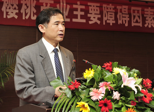 公司樱桃专家蔡宇良教授作《陕西樱桃产业发展现状及科研进展》的报告