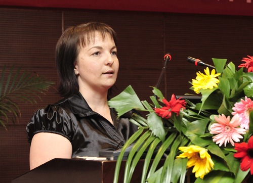 匈牙利樱桃贮藏加工专家Beatrix Notin博士作《世界酸樱桃生产现状及樱桃加工技术》的报告