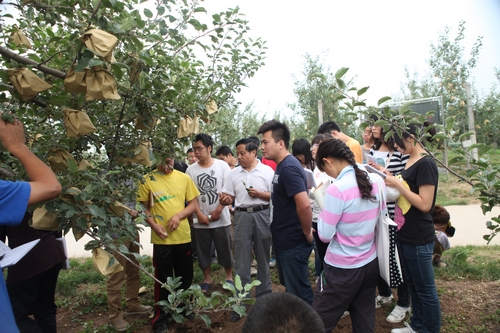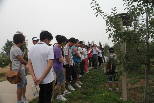 本次实习采用课堂理论与实践操作相结合的方式进行。同学们兴致勃勃,更深层次地对苹果的生理生长、栽培技术、病虫害发生防治等进行了实地学习。在了解了公司白水苹果试验站苹果栽培新模式的同时,参观学习了白水农户苹果示范园的栽培管理情况。