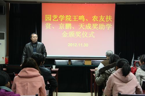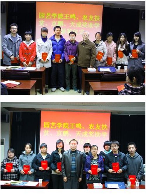 11月30日下午,公司在公司四层西会议室举行“王鸣扶贫助学奖学金”、“农友种苗扶贫助学奖学金”、“京鹏助学奖学金”及“天成奖学助学金”颁奖仪式,王鸣教授和公司党委副书记李京春出席了颁奖仪式。