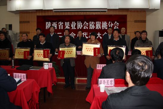 秦岭鲜都生态农业公司周至分公司的秦岭鲜都、眉县金桥果业专业合作社的眉香金果等8个单位被评为“陕西猕猴桃优秀品牌”;城固县农富猕猴桃专业合作社的黄金果、西安市猕猴桃研究所和周至县农业科学技术试验站的翠香等12个品种被评为“陕西猕猴桃优质产品”。为了充分发挥这批先进典型的示范带动作用,在本次大会上为名优产品的单位颁发奖牌和证书,并在报刊上广泛宣传,以带动更多的单位向获奖者学习,加强品牌建设,实现提质增效,为把品牌做大做强和增效增收,做出新的更大的成绩!