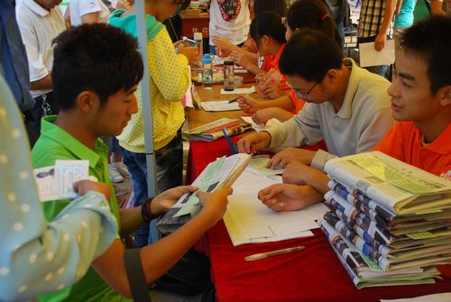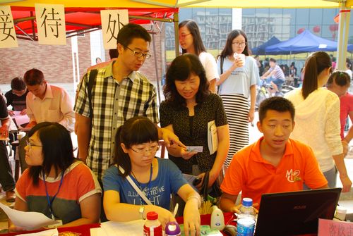 家长接待处志愿者耐心为新生及家长答疑解惑