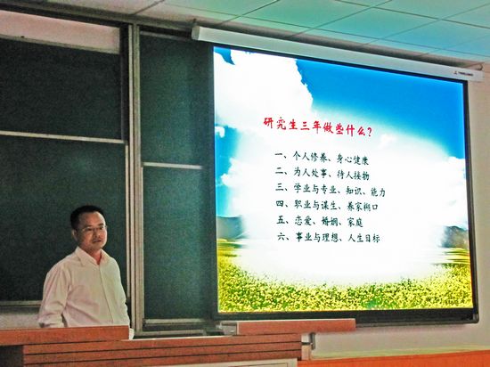 作为年轻的优秀导师代表,徐炎副教授和李明军副教授从自身的发展历程谈起,向同学们讲述只要拥有了明确的人生规划和坚持不懈的努力,就可以运用知识改变自己的命运,并具体谈到如何使自己成为一名优秀的研究生,他们真挚恳切的话语打动了现场每一位同学。