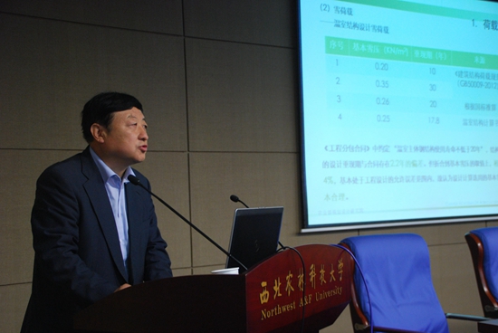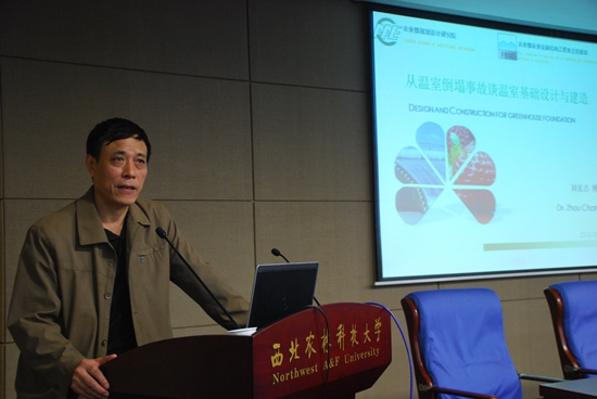报告中,周长吉研究员结合自身的科研工作实际,图文并茂的介绍了研究进展。他从温室基础的定义切入,介绍了温室基础的构造和概念,并用一些生产实践中温室倒塌的案例分析了温室倒塌的原因及问题所在,他强调做温室工程一定要多实地考察,了解当地的气候等条件,并进行荷载、材料、构造等的分析,才能总结出问题所在。