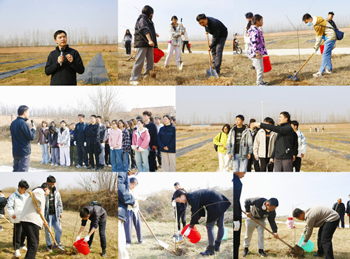 专业筑基:劳动中的学科密码。试验站老师结合试验站土壤特性,示范标准化种植技术,从树坑深度、培土压实到灌溉,每一步操作均融入园艺学科知识。“原来种树不是‘力气活’,而是‘技术活’!”园艺专业李同学感叹。植树现场热火朝天,男生主动承担深挖树坑的重任,女生细致调整苗木定植角度,更有同学自发记录种植数据,为后续科研积累素材。同学们分组协作,挥锹铲土、扶苗培土、围堰浇水,在实操演练中深化对理论知识的理解。从课本到田间,劳动实践让抽象知识具象为可触摸的成长印记。