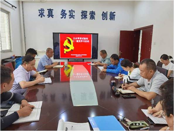 王雷存老师带领大家学习了习近平在中央政治局第二十一次集体学习时强调的《贯彻落实好新时代党的组织路线,不断把党建设得更加坚强有力》。表示要理论结合实际,抓好试验站的劳动组织体系建设,要认真贯彻执行工作条例,严守工作纪律,把白水苹果试验站建设成为讲政治、守纪律、负责任、有效率的模范试验站。