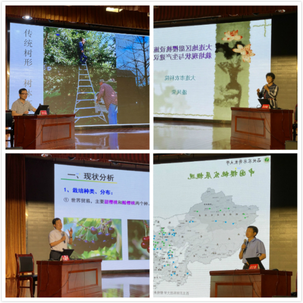 中国园艺学会樱桃分会理事长张开春教授、公司蔡宇良教授、大连市农业科学研究院果树所潘凤荣研究员、山东省果树研究所孙玉刚研究员等4位专家在研讨会上分别做了樱桃现代整形修剪技术、樱桃产业现状与发展趋势、大樱桃设施栽培技术、甜樱桃品种选择技术的学术报告。