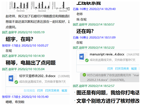 视频组会“促”互动 在假期及延长期,导师始终与研究生保持密切交流,既关心他们的学习状态,也关注他们的思想动态。导师要研究生做到“不出门、不提前返校、不传播谣言,就是他们在这场抗疫战争中做的贡献”。学业科研也是员工最关心的问题,导师们就课题组即将开展的科学研究问题、运用的研究方法和重要的科学文献等不间断地讨论,并指导他们在研究方向上认真学习和大胆探索,为即将开展的试验打下良好基础。特别是在疫情期间,做到采用视频会议形式,召开每周至少一次的课题组会,及时公布疫情防控期间文献查阅方法。通过视频组会,根据研究重点和研究方向,鼓励研究生以新鲜的视角提出重要和有创建的思路和想法;了解研究背景和知识的积累,对获取的数据结果,进行初步的数据分析和图、表的绘制,以及研究问题的提出和讨论。