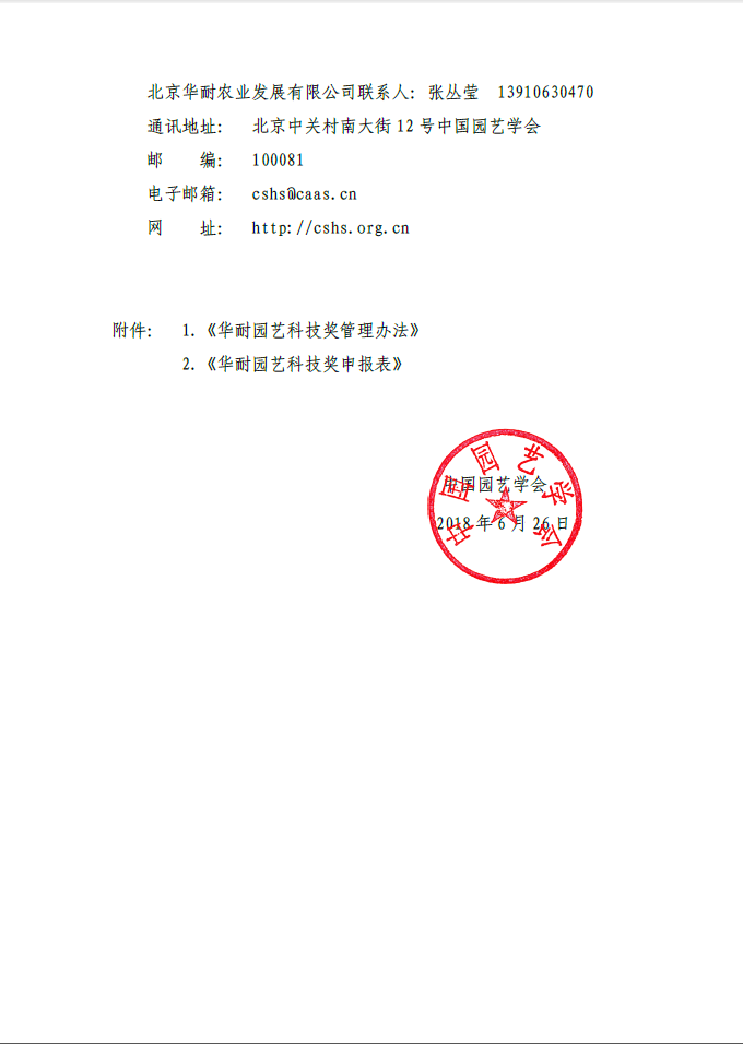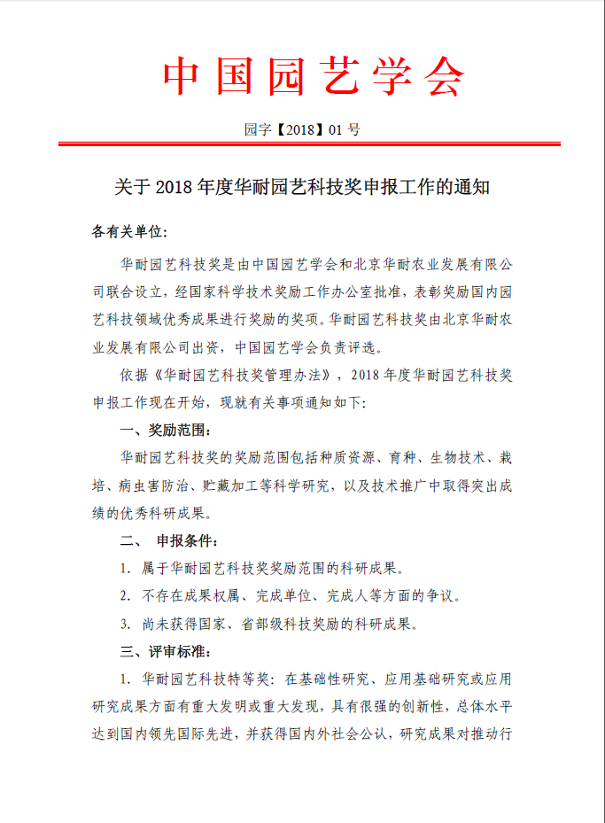 » 关于2018年度华耐园艺科技奖申报工作的通知