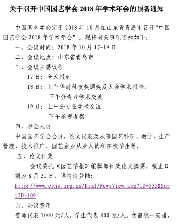 » 关于召开中国园艺学会2018年学术年会的预备通知